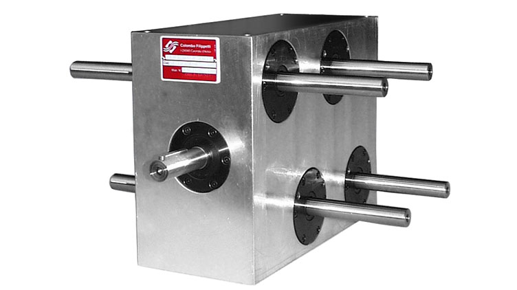 具有四個同步間歇運動的球形凸輪機構。雙邊輸出